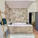 The 60 m^2 Parenthese Occitane - Free Parking - Balneotherapie apartment provides guests with a sitting area equipped with air conditioning and furnished with a sofa set. A television with satellite channels make up the in-room media amenities. Beds fitted with hypo-allergenic pillows are at guests' disposal. Offering a spa bathtub, a separate toilet, and a shower, a bathroom comes with hairdryers and towels.